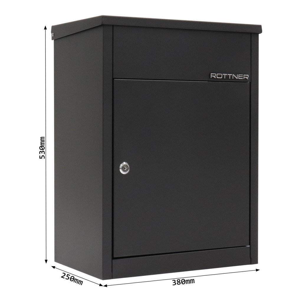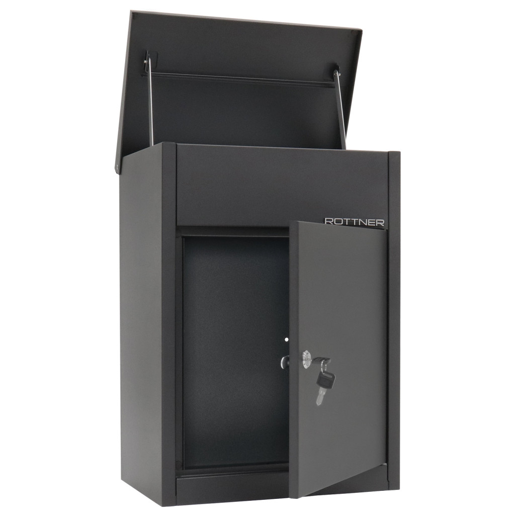 Rottner Parcel Keeper 500 negru permite primirea coletelor atunci cand nu sunteti acasa. Coletul este introdus din partea de sus si poate fi accesat doar cu cheia de pe usa frontala. Fabricat din otel zincat, protejeaza coletele de furt, umezeala si murdarie. Sunt incluse 2 chei si materialul de montare.