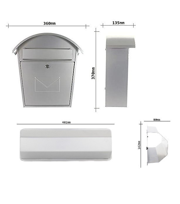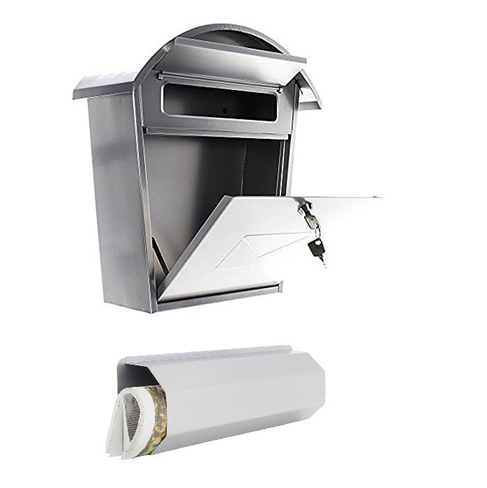 AOSTA SET argintiu cu suport ziare este o cutie postala din otel de inalta caliatate care permite stocarea corespondentei fara deteriorari. Datorita rezistentei la intemperii si coroziune, se poate monta la exterior pe perete,gard sau poarta.Produsul are orificii predefinite pentru instalarea corespunzatoare. Contine chitul de ancorare.