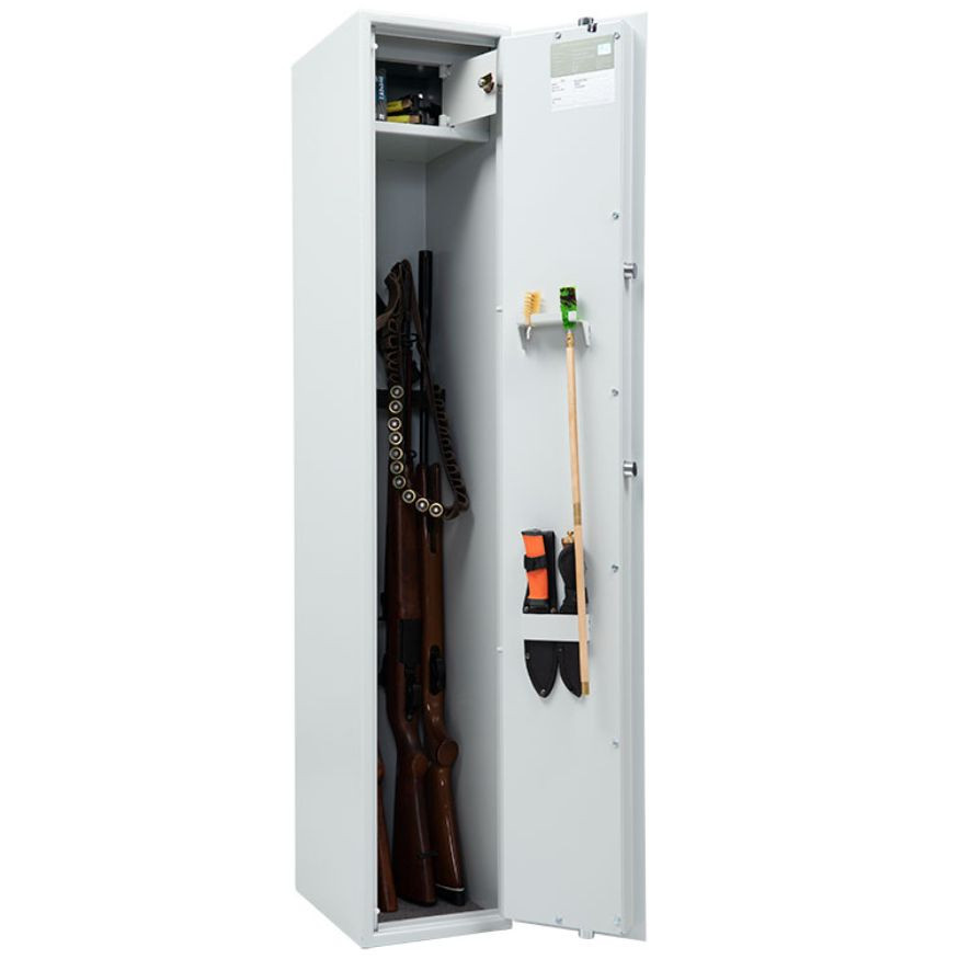 Seif sigur si fiabil, certificat pentru rezistenta la efractie conform standardului EN 14450, clasa S1, este ideal atat pentru depozitarea in siguranta a armelor cat si pentru pastrarea munitiilor. Sistemul de inchidere cu bolturi in trei directii ofera protectie sporita. Designul modern, finisat in gri deschis, potrivita pentru orice spatiu profesional sau rezidential.