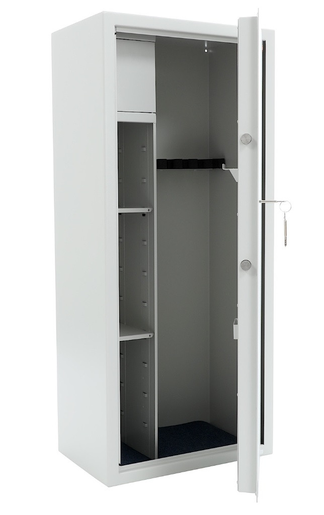Seif sigur si fiabil, certificat pentru rezistenta la efractie conform standardului EN 14450, clasa S1, este ideal atat pentru depozitarea in siguranta a armelor cat si pentru pastrarea munitiilor. Sistemul de inchidere cu bolturi in trei directii ofera protectie sporita. Designul modern, finisat in gri deschis, potrivita pentru orice spatiu profesional sau rezidential.