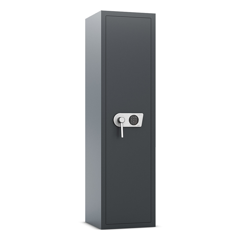 Compact, competent si sigur descrie cel mai bine dulapul de arme Rottner Dakota 5 EN0. Testat si certificat pentru depozitarea a 5 arme lungi. In interior se afla un suport din spuma pentru arma, suport pentru tija de curatare si un raft reglabil.