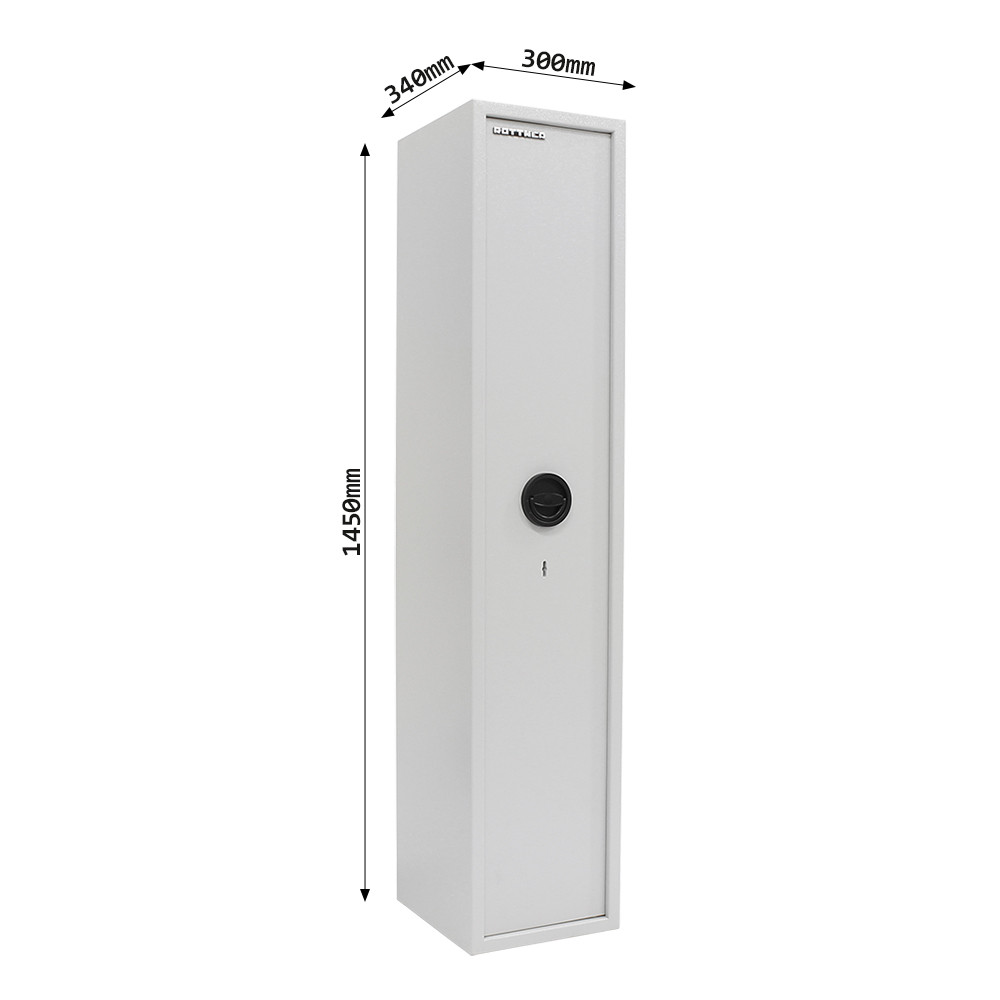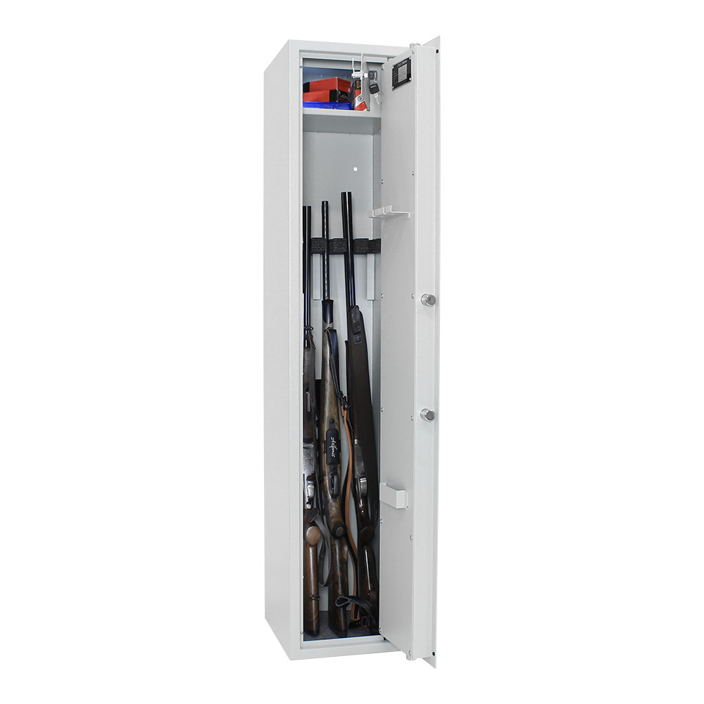 Rottner Yukon 5, certificat S1, poate fi folosit ca dulap pentru arme (maxim 5 arme lungi) si dulap pentru munitii. Inchidere pe cheie, cu 2 chei incluse. Dotat cu seif interior si suport pentru tija de curatare amplasat pe usa interioara.